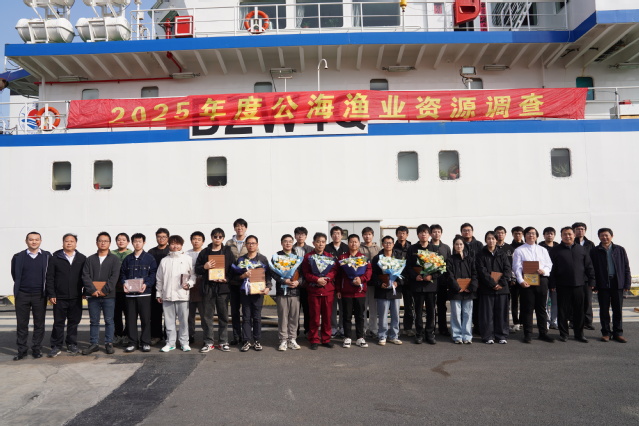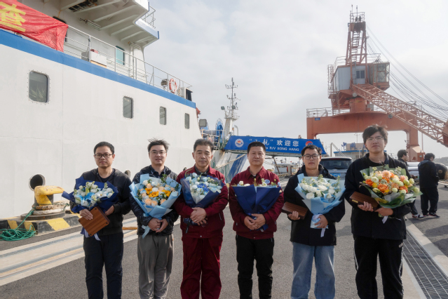 12月1日下午,承载着农业农村部“2025年度公海渔业资源调查项目”重要使命的“淞航”号远洋渔业资源调查船,在完成为期85天的中西太平洋公海渔业资源综合科学调查任务后,顺利抵达上海横沙渔港码头。上海海洋大学副校长李晓飞,党委常委、海洋生物资源与管理学院党委书记郑卫东,船舶管理中心主任许四杰及项目负责人唐浩教授等到码头迎接“淞航”号科考团队凯旋。