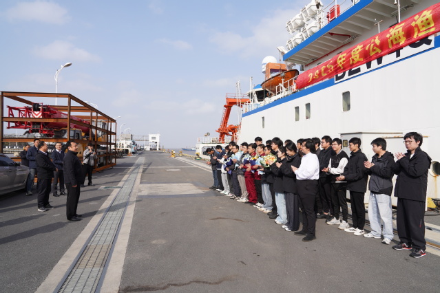 李晓飞代表学校对全体科考队员的胜利凯旋表示热烈欢迎,向全体队员致以衷心感谢。他指出,本次历时85天的航次是一次难得的超长周期海上科考,全体队员经受住了考验,出色完成了任务,达成了科学目标,也为每位队员增添了宝贵的人生经历。他希望师生进一步发扬勇于探索、艰苦奋斗的科考精神,将宝贵的海上实践经验转化为教学和科研成果,在服务国家海洋强国战略、推动全球海洋可持续发展的征程中再创佳绩、再立新功。